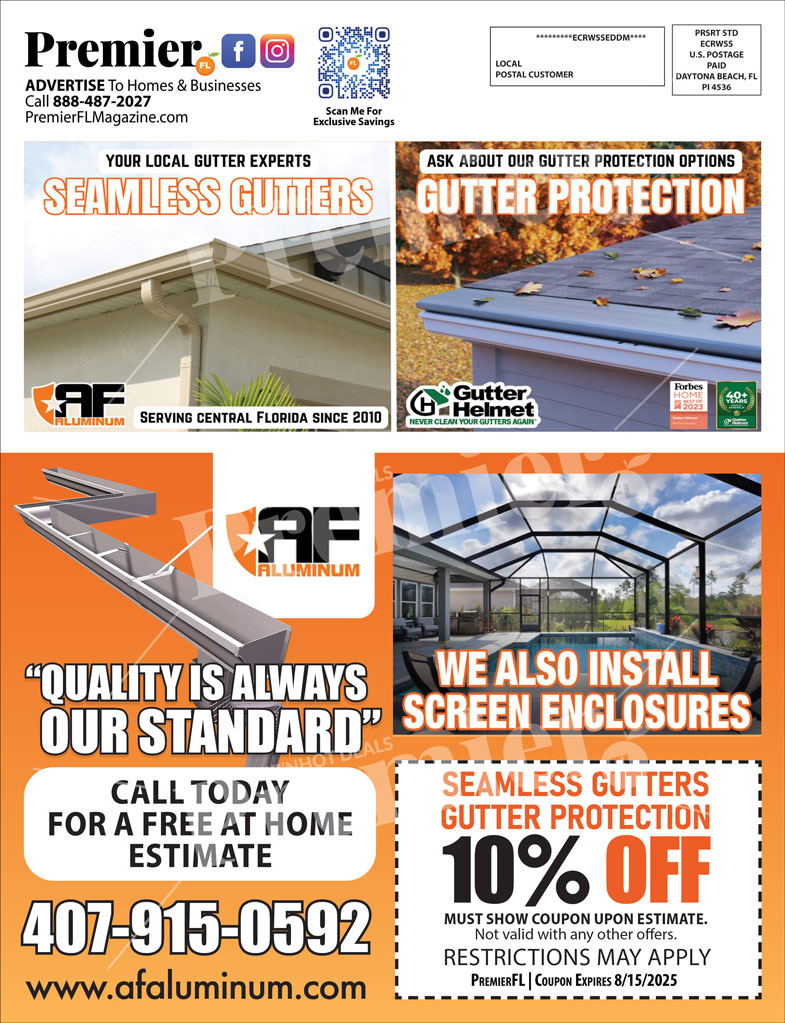 AF Aluminum specializes in seamless gutter systems, gutter protection, and custom screen enclosures throughout Central Florida. With over 10 years of experience, their team provides expert craftsmanship, free at-home estimates, and dependable service for every homeowner.