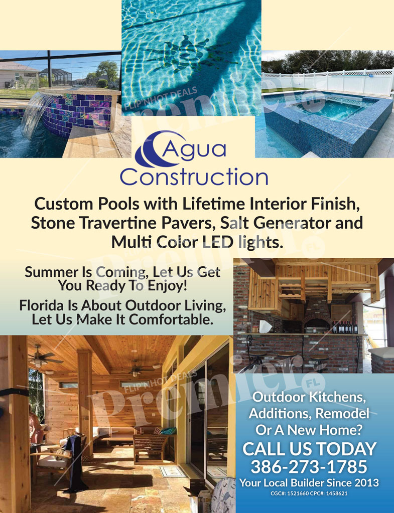 Agua Construction is a trusted Florida builder specializing in custom pools, outdoor kitchens, home additions, and remodeling. Since 2013, Agua Construction has helped homeowners transform their outdoor spaces into beautiful, functional retreats designed for Florida living.