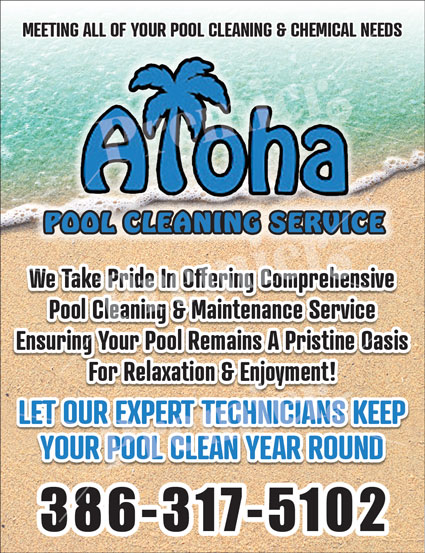 Aloha Pool Cleaning Service provides reliable and professional pool cleaning and chemical maintenance services throughout Volusia County. Dedicated to keeping your pool sparkling clean and swim-ready, Aloha Pool Cleaning Service helps homeowners enjoy a pristine backyard oasis year-round.