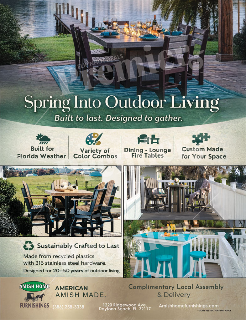 Amish Home Furnishings offers premium-quality indoor and outdoor furniture handcrafted by skilled Amish artisans. Located in Daytona Beach, Florida, the showroom features durable, beautifully designed furniture built to withstand Florida’s climate while enhancing the comfort and style of any home. With a focus on craftsmanship and long-lasting materials, Amish Home Furnishings provides customers with timeless pieces designed for everyday living.