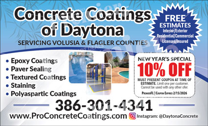 Concrete Coatings of Daytona provides durable, high-quality concrete coating solutions for residential and commercial properties throughout Volusia and Flagler counties. Known for professional workmanship and long-lasting results, the company helps property owners protect, enhance, and extend the life of their concrete surfaces.