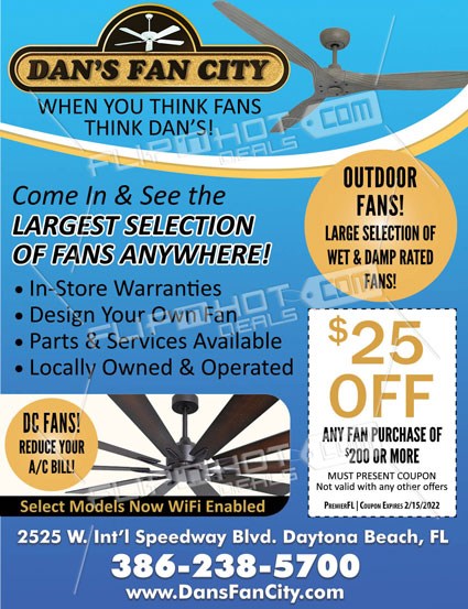 Danโs Fan City offers the largest selection of ceiling fans anywhere โ with hundreds of styles, customizable designs, and expert assistance to match your home perfectly. Locally owned and operated, theyโve been keeping Florida cool since 1979.