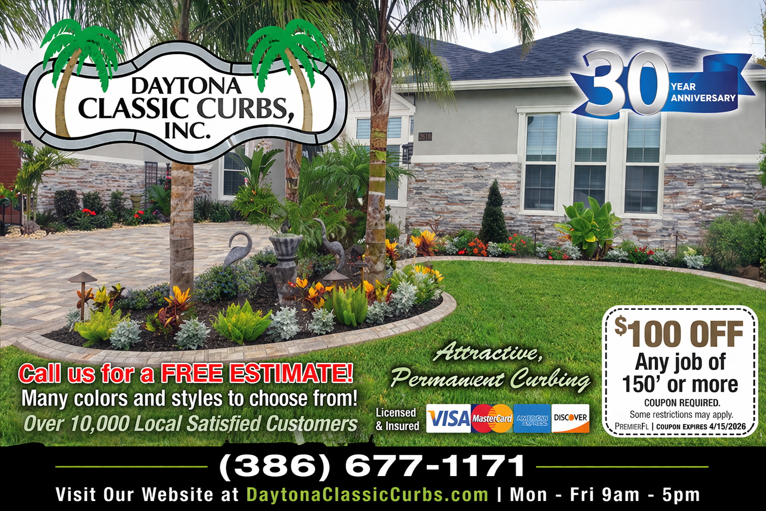 With thousands of color and style combinations available, Daytona Classic Curbs customizes each installation to complement your home or business. Their experienced team delivers precision installation and long-lasting results designed to withstand Florida’s climate.