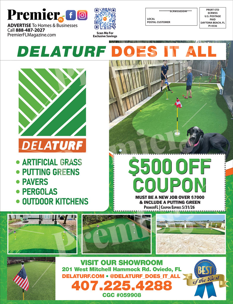 DelaTurf specializes in premium artificial grass installation and custom outdoor living solutions in Oviedo and throughout Central Florida. From backyard putting greens to full landscape transformations, DelaTurf delivers professional design, expert installation, and long-lasting results.