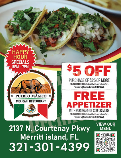 El Pueblo Mágico is a vibrant Mexican restaurant in Merritt Island, Florida, serving authentic Mexican food in a welcoming and festive atmosphere. Known for bold flavors, fresh ingredients, and friendly service, El Pueblo Mágico is a favorite spot for locals looking to enjoy traditional Mexican cuisine close to home.