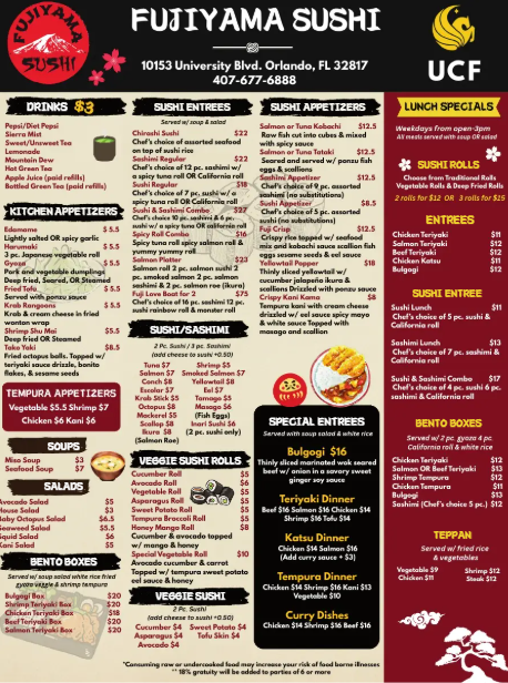 Visit Fujiyama Sushi today and enjoy authentic Japanese cuisine in the heart of Orlando.