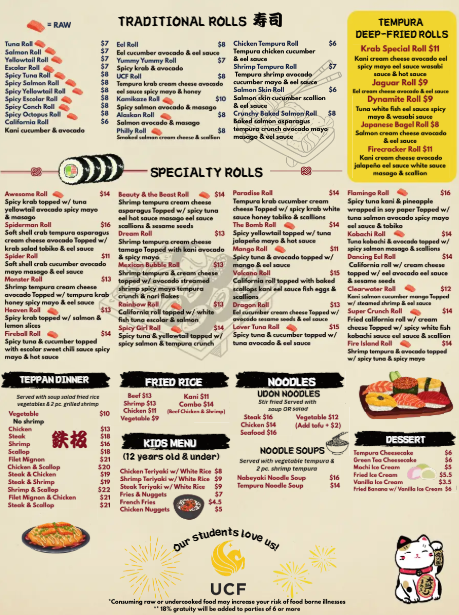 Fujiyama Sushi offers authentic Japanese cuisine and fresh sushi in Orlando, Florida. Conveniently located on University Blvd, Fujiyama Sushi is known for high-quality rolls, sashimi, appetizers, and traditional Japanese favorites in a welcoming atmosphere.