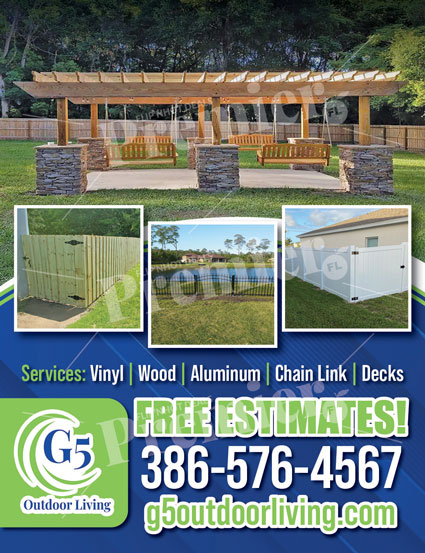 Upgrade your property with premium fencing and custom outdoor designs from G5 Outdoor Living in South Daytona. Their expert team provides top-tier craftsmanship and attention to detail on every project โ€” from fences and decks to pergolas and patio structures.