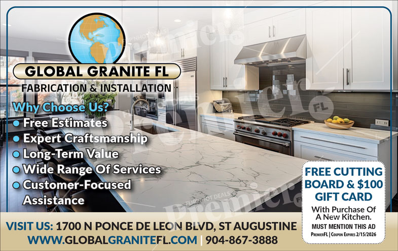 Global Granite FL is St. Augustine’s trusted source for premium stone countertops, offering precision fabrication and installation services for kitchens, bathrooms, and commercial spaces. With years of experience and top-quality materials, they help homeowners create stunning, functional interiors built to last.