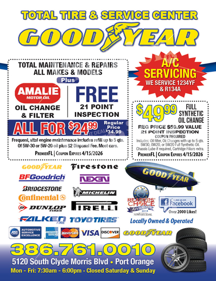 Visit Goodyear Total Tire & Service Center today for dependable automotive service and expert tire solutions in Port Orange, Florida.