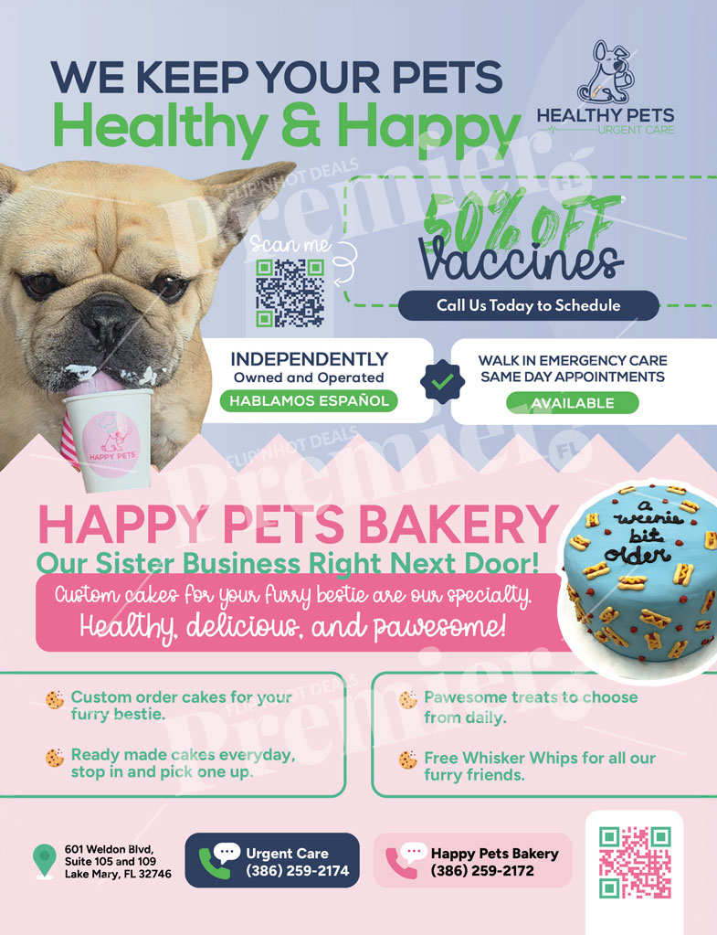🍰 Sister Business: Happy Pets Bakery (next door) for healthy, delicious pet treats and cakes!