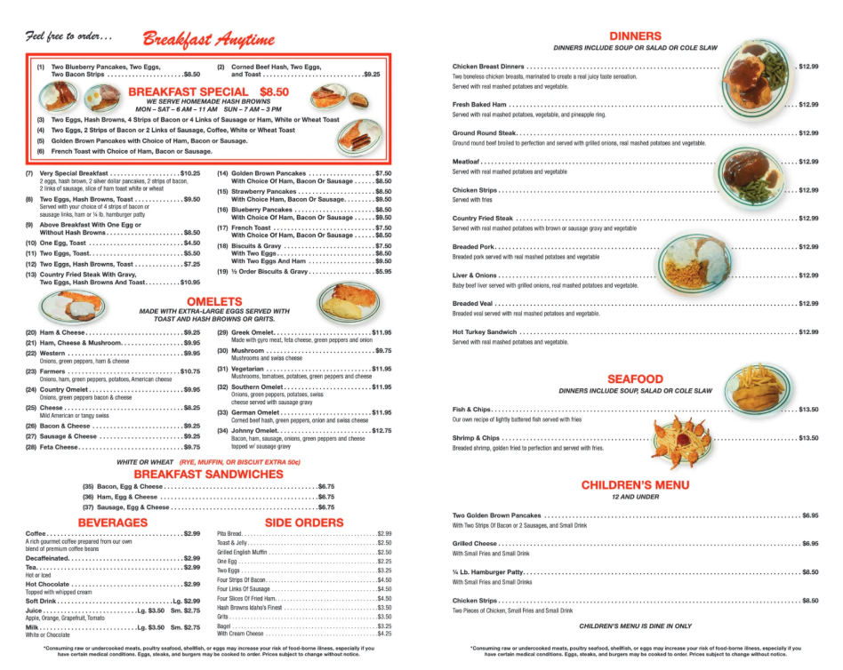 Johnny’s Diner has been serving the Orlando community since 1995 with classic American breakfast and lunch favorites in a warm, family-friendly atmosphere. Conveniently located on University Blvd, this locally owned and operated diner is known for hearty portions, friendly service, and affordable prices.