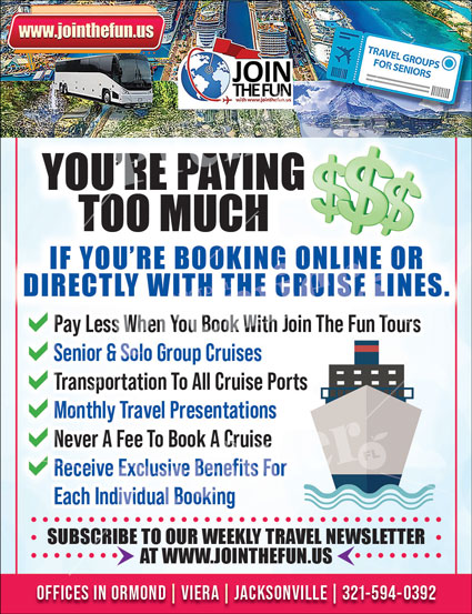 Join The Fun makes travel more enjoyable, affordable, and stress-free for seniors and solo travelers throughout Florida. With decades of experience organizing group cruises and land tours, Join The Fun takes care of every detail — from transportation and bookings to exclusive onboard benefits — allowing you to simply relax and enjoy the journey.