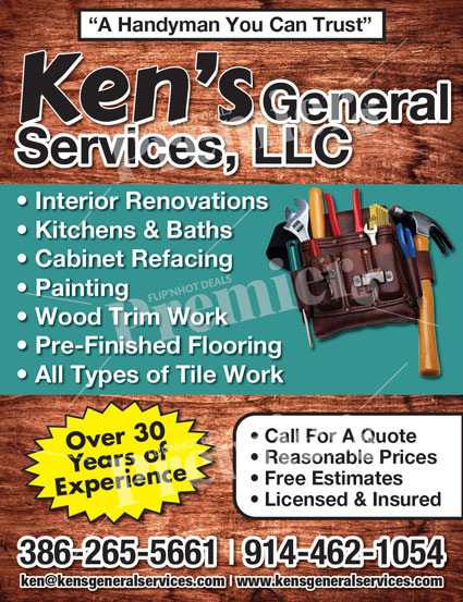 Ken’s General Services, LLC is a trusted local contractor providing reliable interior renovation and handyman services for homeowners seeking quality craftsmanship and honest service. With over 30 years of experience, Ken’s General Services is known for delivering dependable results on projects both large and small, making it a go-to choice for home improvement needs.