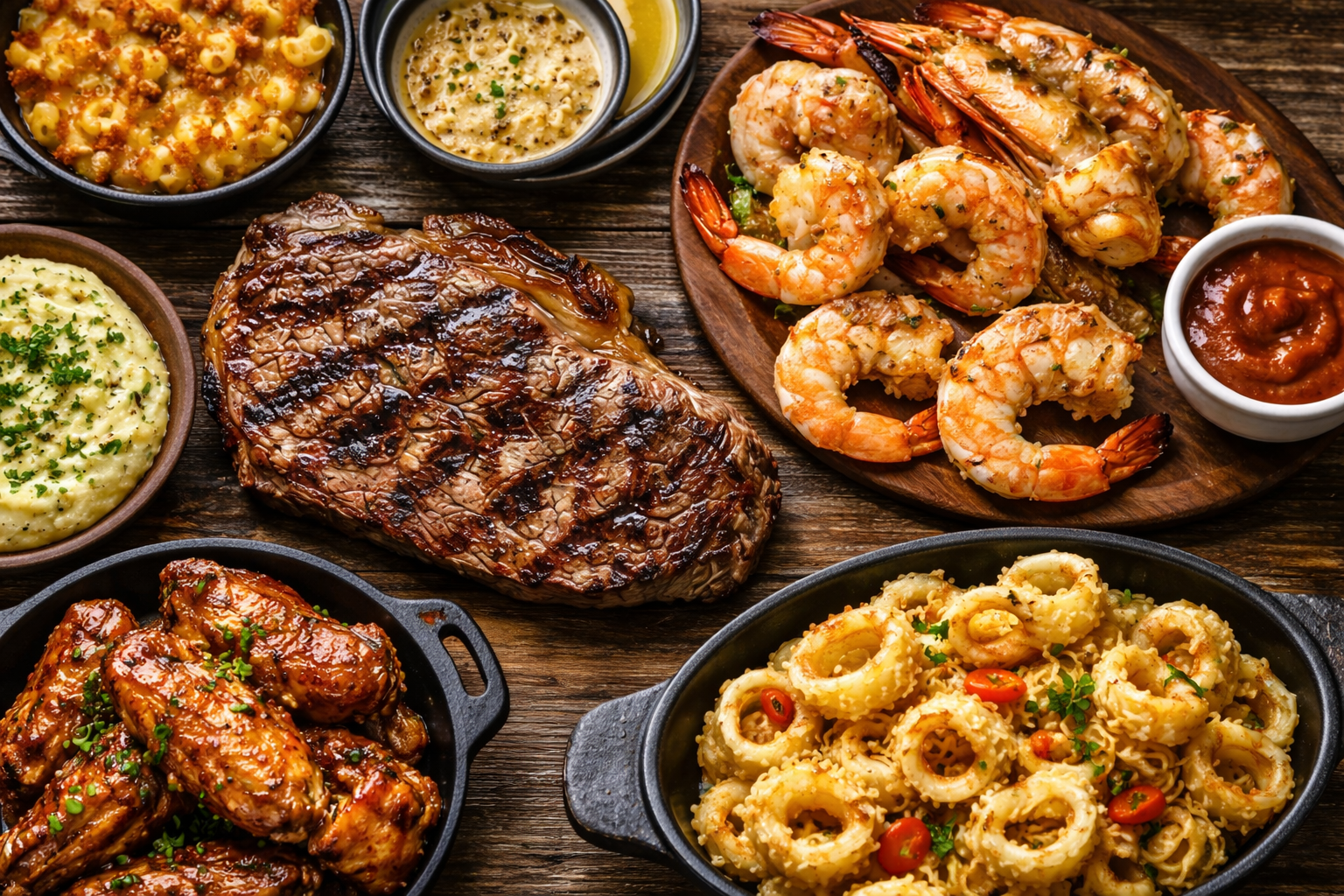 🍤 Steaks • Prime Rib • Seafood • Ribs • Wings • Cocktails
