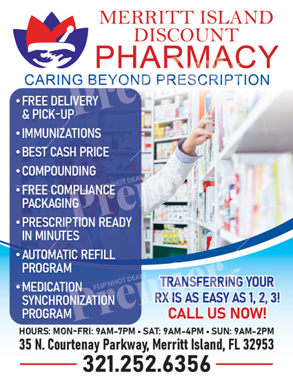 Merritt Island Discount Pharmacy provides free delivery and pickup options, immunizations, compounding services, and competitive cash pricing for prescriptions. The goal is to make high-quality pharmacy care accessible, affordable, and stress-free.