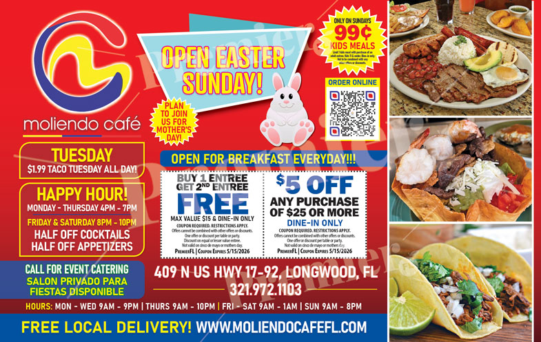 📍 409 N US Hwy 17-92, Longwood, FL | 📞 (321) 972-1103 | 🌐 MoliendoCafeFL.com