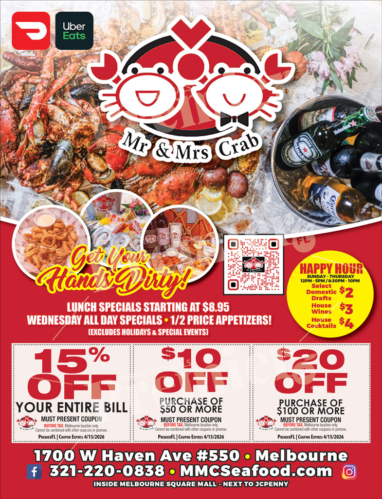 Mr. & Mrs. Crab – Melbourne brings bold flavors and hands-on seafood dining to Melbourne. Known for its signature seafood boils, crab legs, shrimp, lobster, and flavorful sauces, Mr. & Mrs. Crab delivers a fun and unforgettable dining experience.