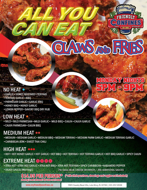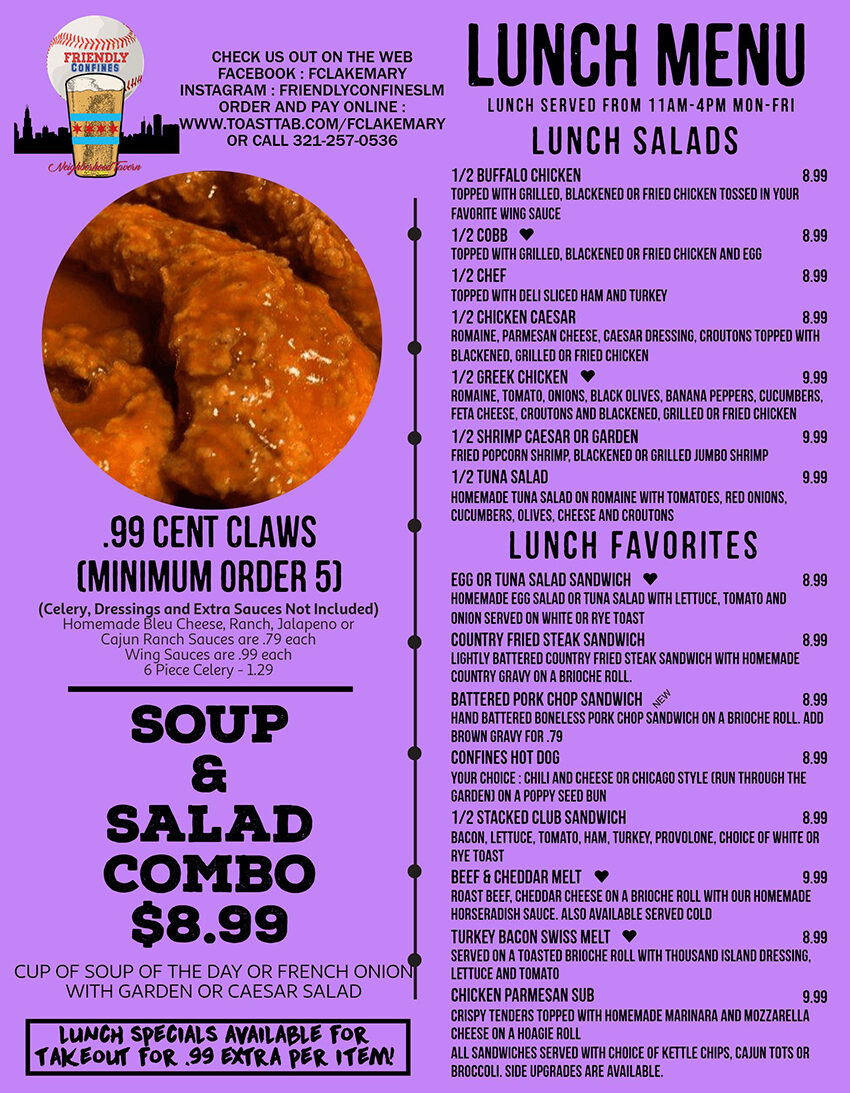 Located on County Road 46A in Lake Mary, My Friendly Confines offers dine-in, takeout, and delivery options through popular platforms. Friendly service, extended hours, and a welcoming atmosphere make it a local favorite for sports fans year-round.