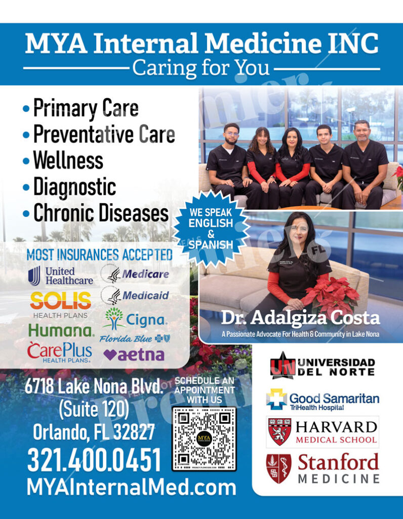 MYA Internal Medicine Inc, led by Dr. Adalgiza Costa, proudly serves the Lake Nona and Orlando communities with personalized, compassionate medical care. The clinic focuses on preventative health, chronic disease management, and wellness for adults of all ages — ensuring every patient receives the attention and care they deserve.