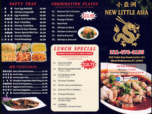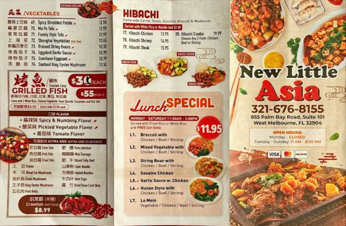 New Little Asia offers authentic Asian cuisine in the heart of West Melbourne. Known for bold flavors, fresh ingredients, and beautifully prepared dishes, New Little Asia serves a variety of traditional Asian favorites perfect for lunch, dinner, or takeout.