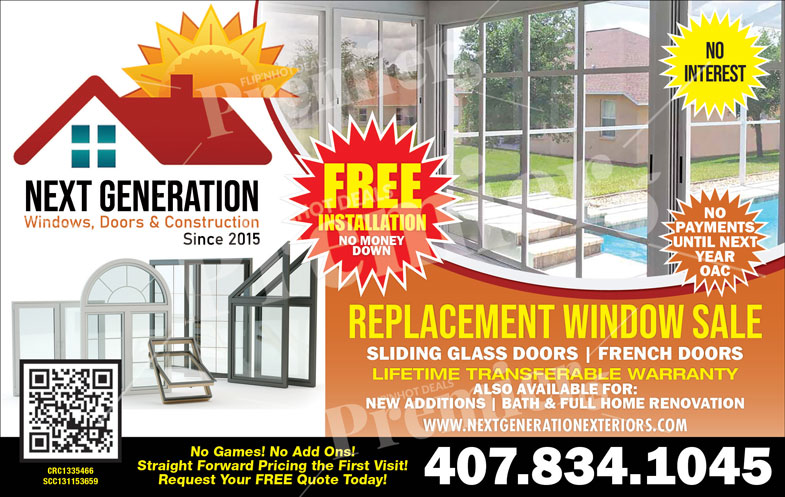 Next Generation Windows, Doors & Construction has been serving Central Florida homeowners since 2015, offering high-quality window and door replacements with unbeatable value. Their team specializes in improving both curb appeal and energy efficiency with top-rated products and expert installation.