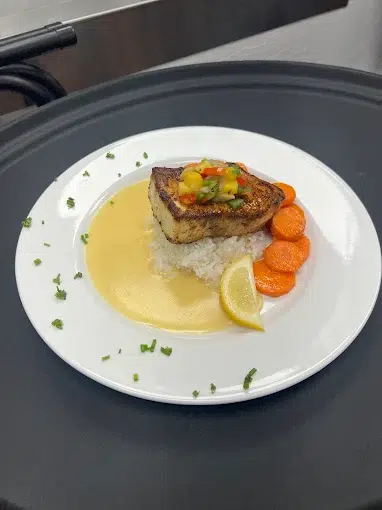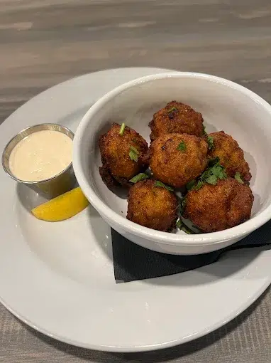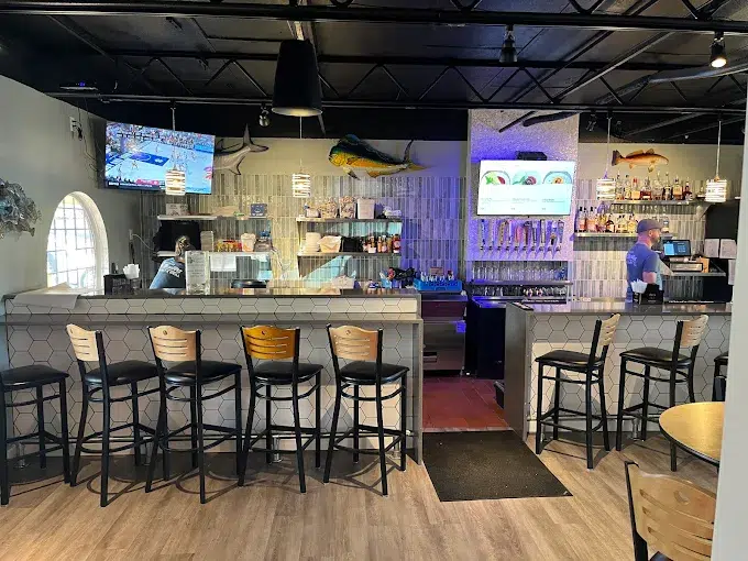 The menu highlights fresh oysters, seafood entrées, and ocean-inspired grill favorites, all prepared with a focus on freshness and flavor. Guests can pair their meals with craft beers, cocktails, and martinis while enjoying daily specials that make every visit exciting and affordable.