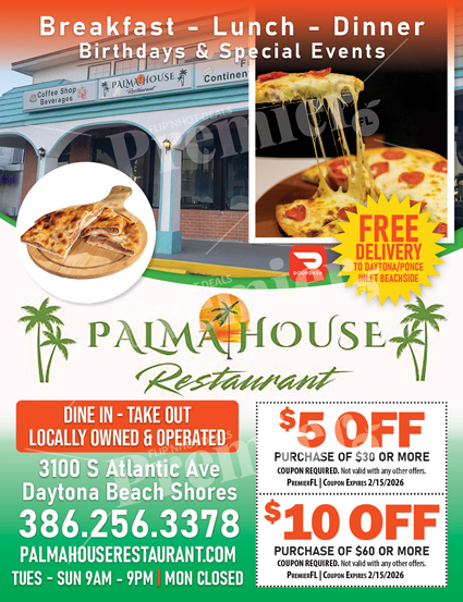Located on Atlantic Avenue in Daytona Beach Shores, Palma House Restaurant is also a great choice for birthdays and special events. With its relaxed environment, dependable food, and locally owned roots, itโs a place guests return to again and again for satisfying meals and friendly hospitality.