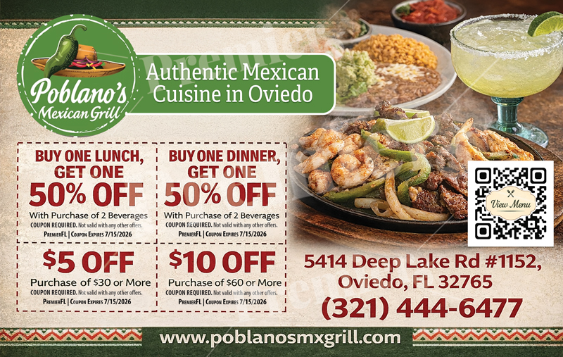 If you’re searching for authentic Mexican food in Oviedo, Poblano’s Mexican Grill is your local destination for fresh ingredients and classic recipes.