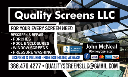 Quality Screens LLC offers professional rescreening and repair for porches, pool enclosures, and window screens throughout Central Florida. Their attention to detail, competitive pricing, and friendly service have made them a local favorite.