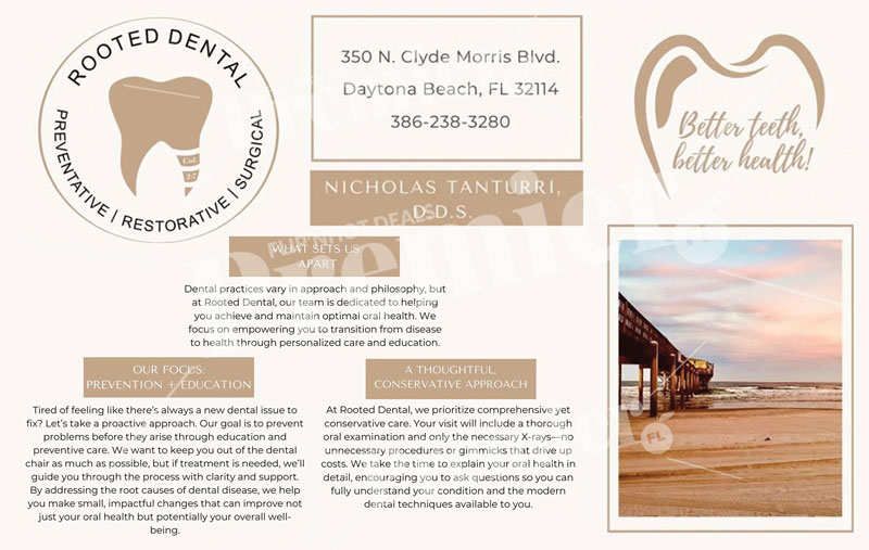 Rooted Dental is a dental practice delivering general and cosmetic dentistry services. They focus on patient-centered care, offering exams, cleanings, restorations, and aesthetic treatments to improve oral health.