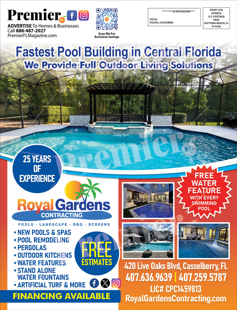 Royal Gardens Contracting is one of Central Florida’s fastest-growing pool builders, delivering complete outdoor living solutions with over 25 years of experience. From custom swimming pools and spas to outdoor kitchens and pergolas, Royal Gardens transforms backyards into luxury retreats.