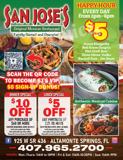 📍 925 W SR-436, Altamonte Springs, FL | 📞 (407) 965-2700 | 🌐 SanJosesMexicanRestaurant.com