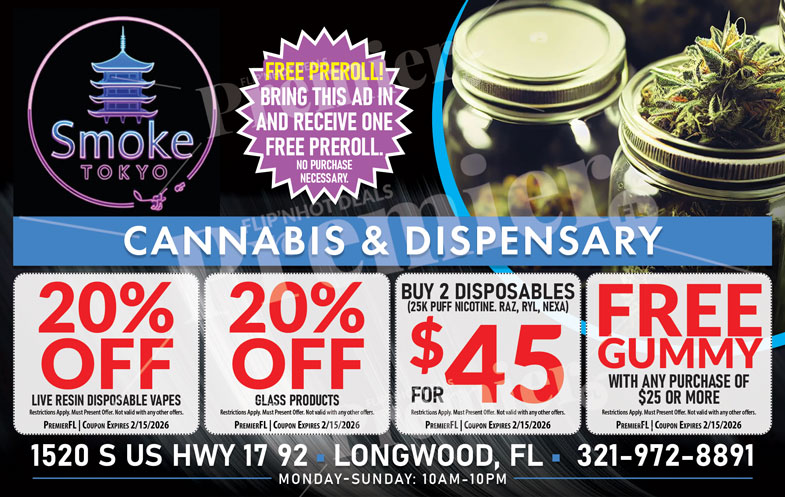 Located on US Highway 17-92 in Longwood, Smoke Tokyo appeals to locals searching for a dependable dispensary-style smoke shop with competitive deals and consistent service. Open seven days a week, it’s ideal for anyone looking for a straightforward, no-pressure shopping experience with regular promotions and in-store specials.