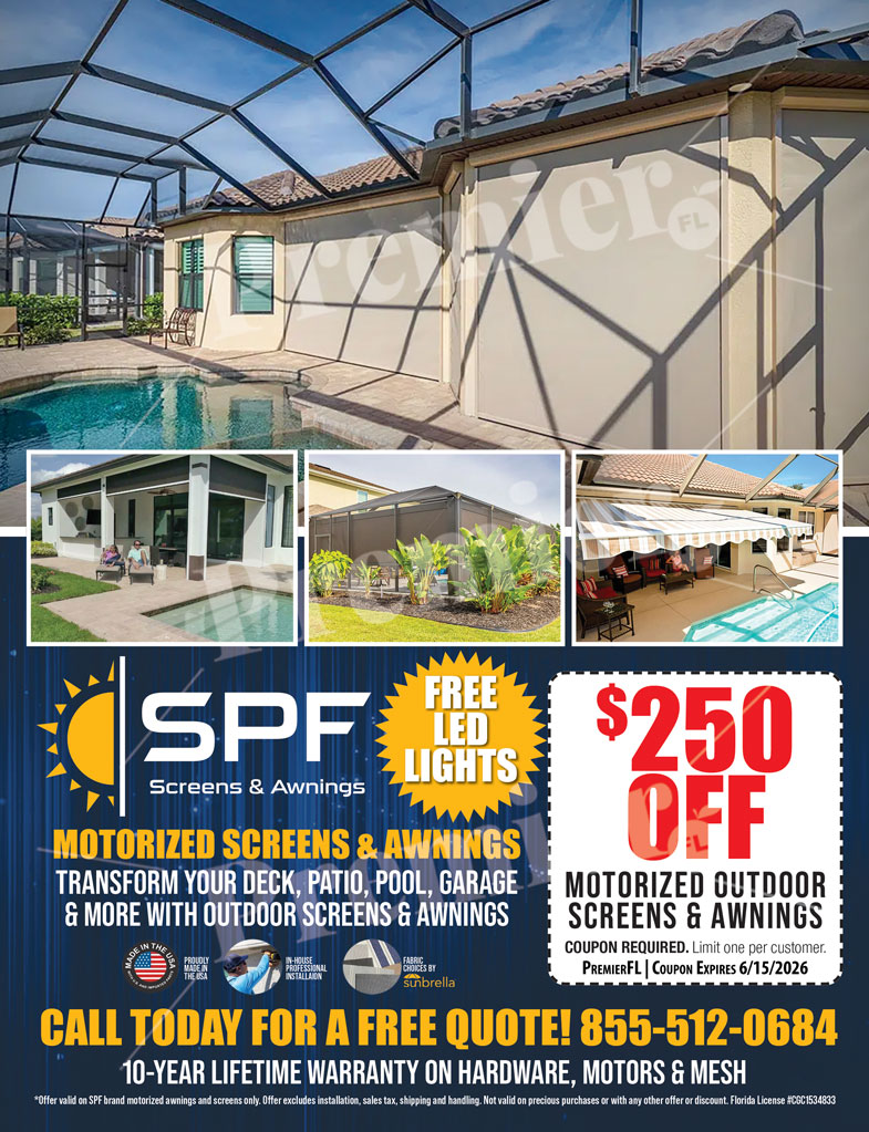 Proudly made in the USA, SPF Screens & Awnings offers in-house professional installation and premium fabric options, including Sunbrella®. With durable hardware, quality motors, and long-lasting mesh systems, their products are built for performance and reliability.