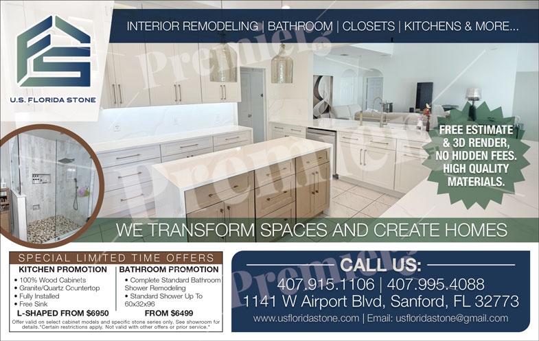 US Florida Stone is a trusted home remodeling company specializing in high-quality kitchen and bathroom transformations throughout Central Florida. With a dedicated showroom in Sanford, US Florida Stone helps homeowners turn outdated spaces into modern, functional, and beautifully designed interiors.