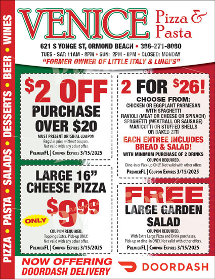 Home Food & DrinkDaytona BeachVenice Pizza & Pasta Coupons
