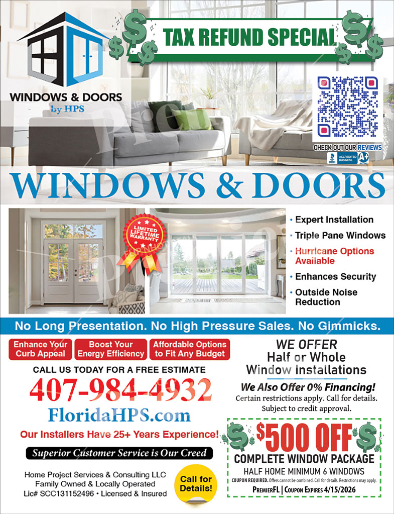 Windows & Doors by HPS provides Central Florida homeowners with professional window and door solutions designed for beauty, energy efficiency, and security. Locally owned and operated, HPS has built its reputation on honesty, expert craftsmanship, and personalized service — without the gimmicks or high-pressure sales tactics that other companies rely on.